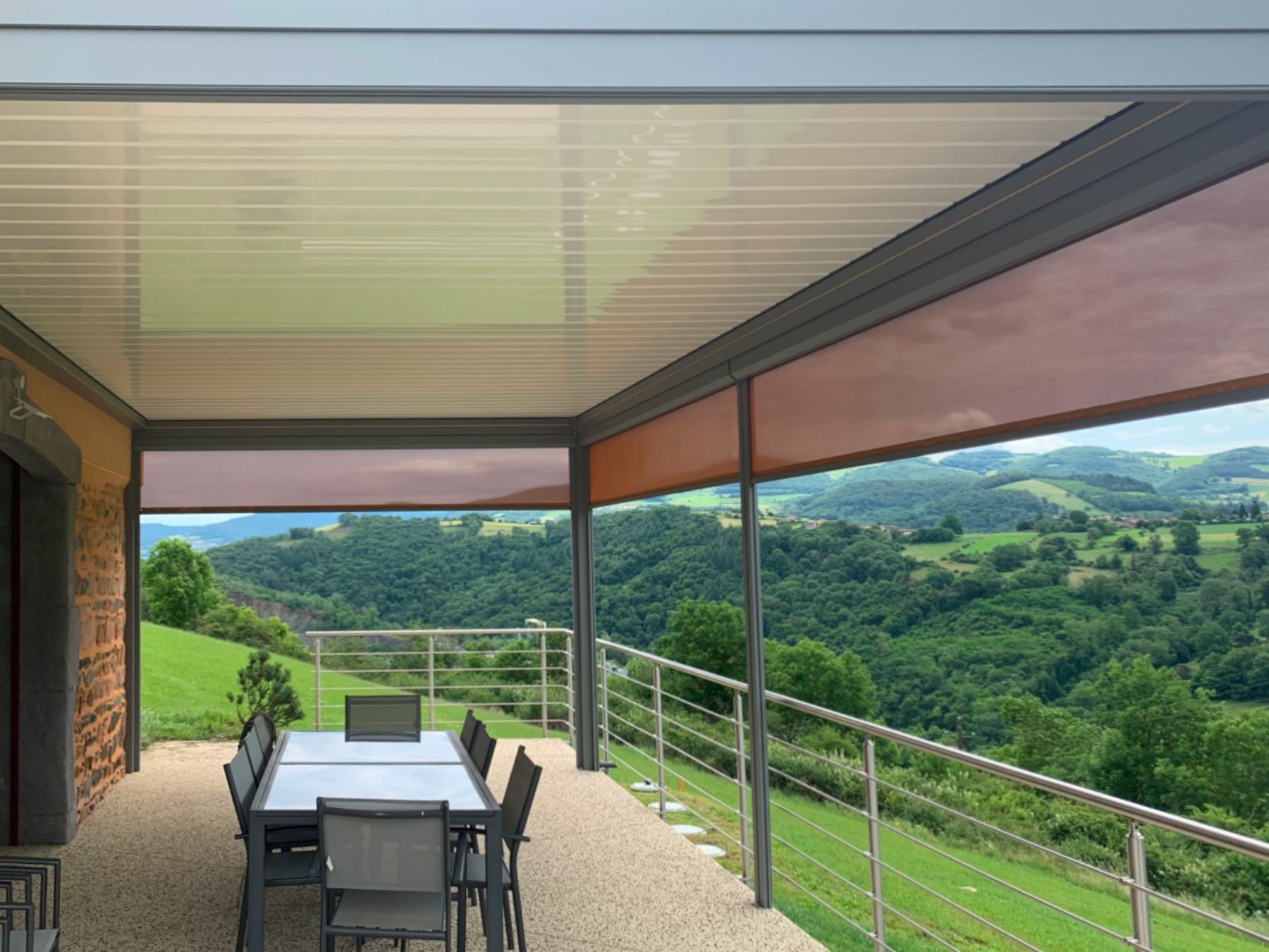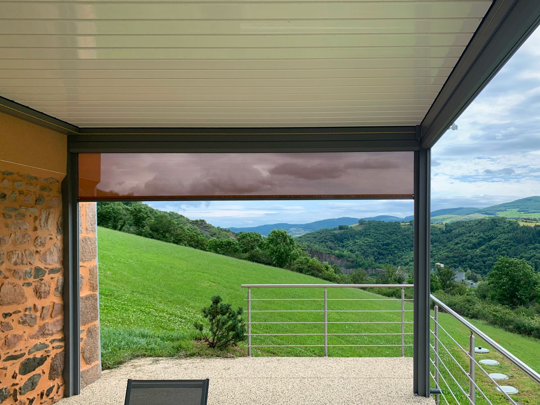 À Saint-Laurent-de-Chamousset, nous avons récemment accompagné un client dans l’évolution de sa pergola bioclimatique grâce à l’installation de quatre stores ZIP RS Smart 100, parfaitement intégrés en pose tunnel. Le résultat ? Une protection solaire élégante, fonctionnelle, et sur mesure.