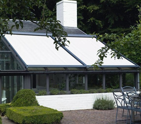 Vous pouvez vous installez tranquillement sous un ciel bleu avec l'ombre douce de la toile qui vous protège du soleil sans occulter la vue sur votre jardin. Plus tard, lorsque la lumière du soleil commence à baisser, vous rétractez la toile et votre terrasse se transforme en un espace unique et convivial pour une soirée entre amis.