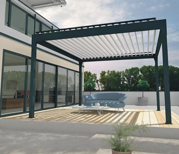Le cœur d’une pergola bioclimatique réside dans ses lames orientables.